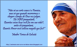 Madre Tereza viveu para ajudar pessoas necessitadas. Eu gostaria muito de ter um pouco da força dela e viver para ajudar os animais sofredores.